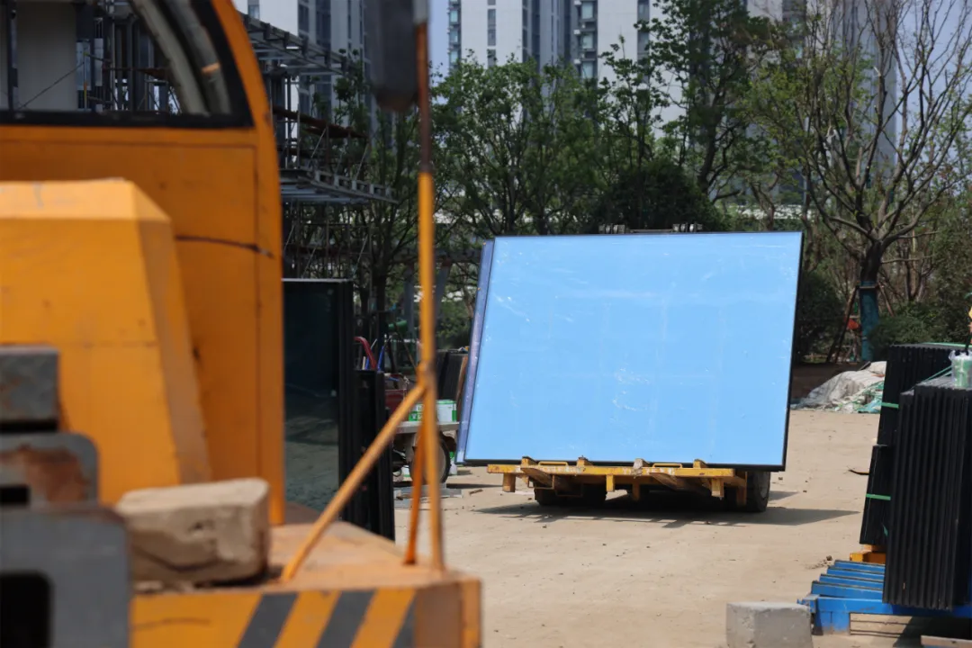 长虹玻璃通用最大尺寸为2000*3660mm,一般是条纹竖向安装,但考虑到统一墙体线条肌理,必须将条纹横向安装。然而,长虹玻璃原定2000mm的宽度,达不到壹号院景墙设计高度,无法满足安装要求,两块玻璃拼装既不安全也不美观。最终,公司决定,定制2650mm加大尺寸,别看只是增加了650mm,造价直接翻了三倍。