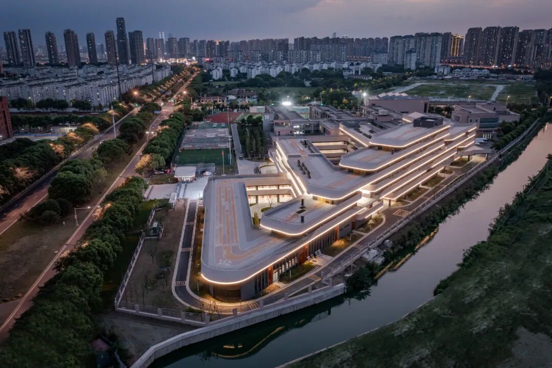 Xinfang Experimental Middle School is located on Xinguang Road in Xinwu District, Wuxi, with Chunyang Experimental Primary School on the west and the river on the east. The conceptual design of this project was completed during Shanghai's lockdown period in 2022, and after two years' of deepening design and construction, this project was successfully opened in September of this year.