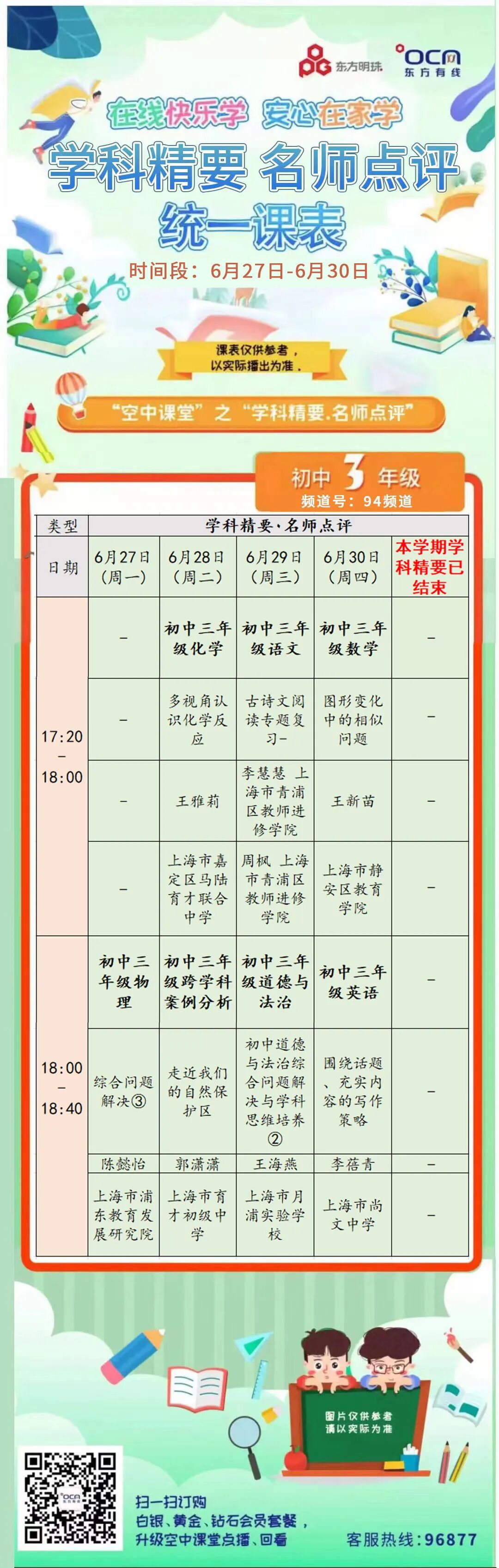 空中课堂丨名师面对面&学科精要 名师点拨统一课表(6月27日-6月30日)请收好!