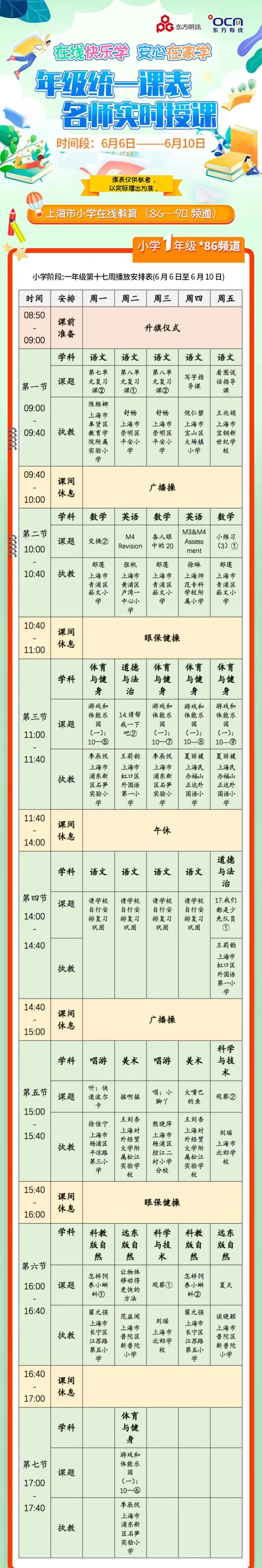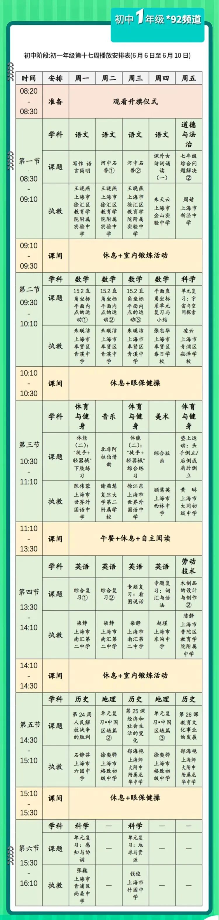 空中课堂丨空中课堂&名师面对面&学科精要 名师点拨统一课表(6月6日-6月10日)!
