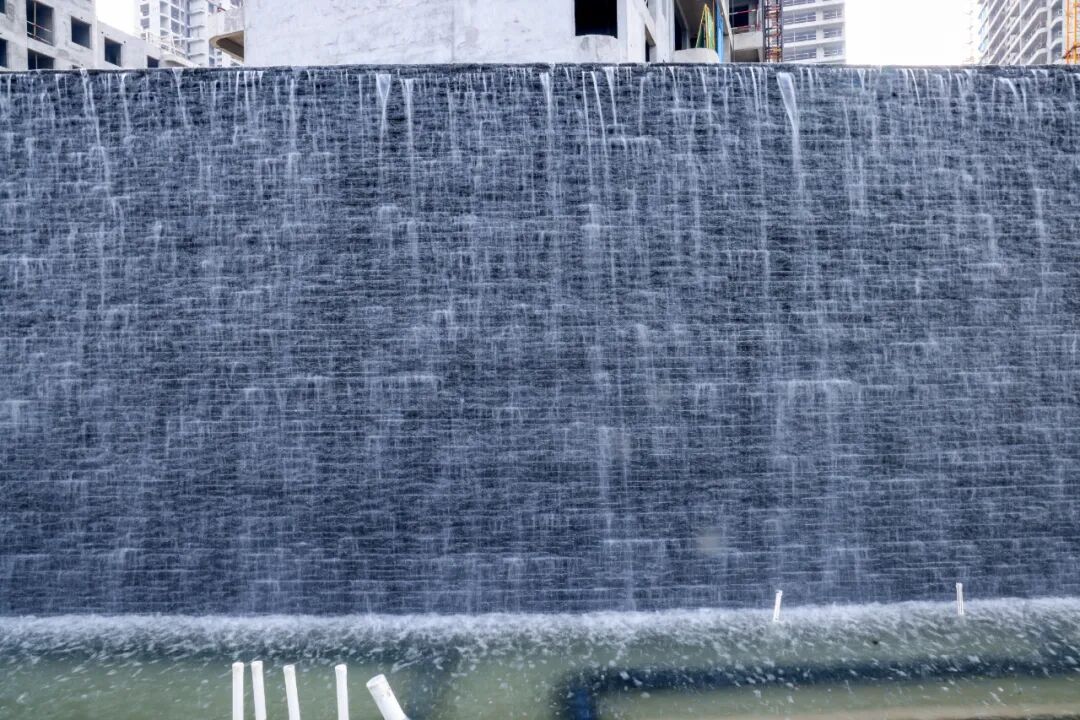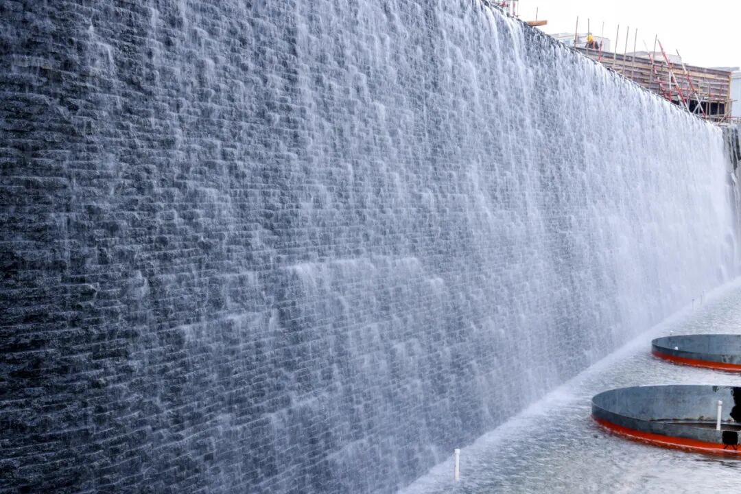为了追求更加极致的效果,金沙金明書院水幕墙从今年正月初九就开始进行多次打样,截止到6月中旬才确定最终方案,期间,多位国际大师亲临现场,出谋划策。