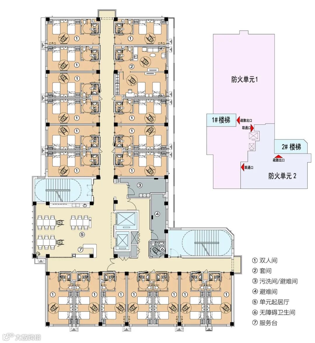最后,根据当年北京市新出台的《北京市既有建筑改造工程消防设计指南》条文规定,通过每层设置两个防火单元的方案,使得消防电梯问题迎刃而解。