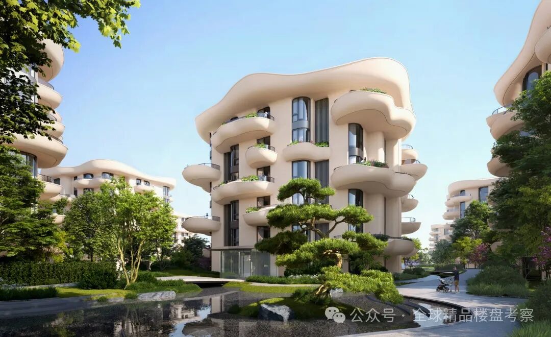 项目高层立面设计上,以曲线为“引”,自下而上生长的线条交错、融合、延伸、无边界,最终在三维尺度上形成“超流线”,呈现出流畅而富有张力的曲线序列。