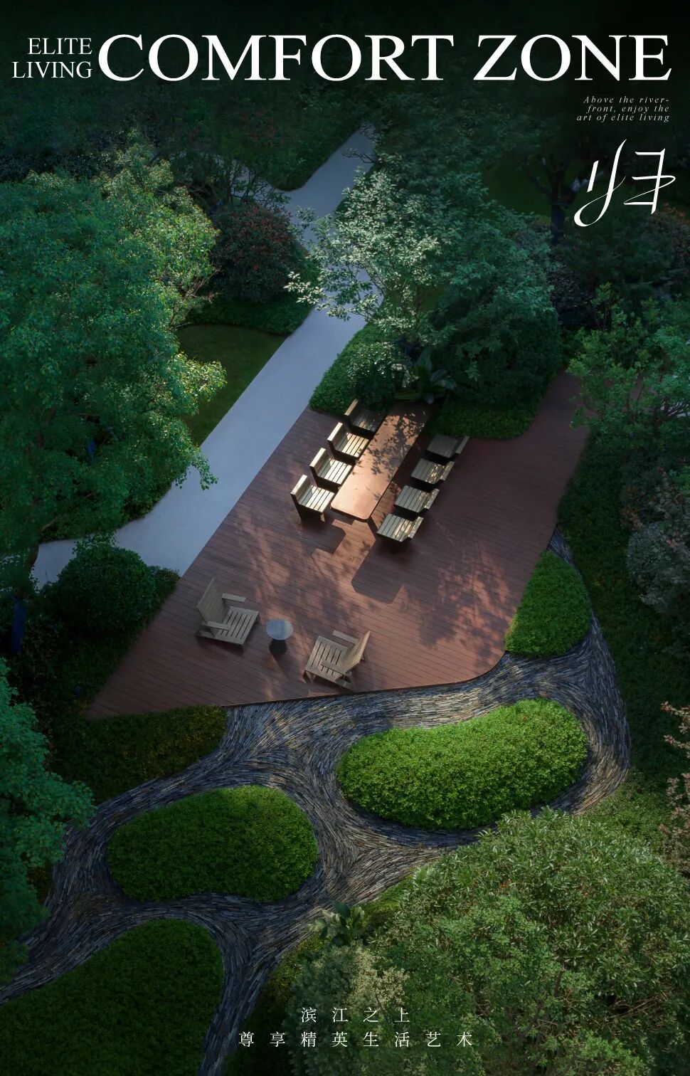 立足国际视野,设计从滨江商务区豪宅泰晤士河壹号和曼哈顿432ParkAve中获取灵感,引“水“入园,勾勒流动的滨江生活方式以及曲折设计语言,结合国际滨江商务生活品质,提出“漫活奢境”的景观主题,将武汉都市精英生活融合滨水文脉与自然环境,打造滨江商务区定制化圈层慢生活,创造独属于精英的“舒适圈”。
