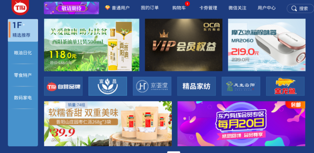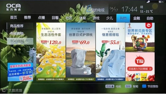 东方有线高清智能机顶盒用户打开电视—购物—TGO商城进入首页