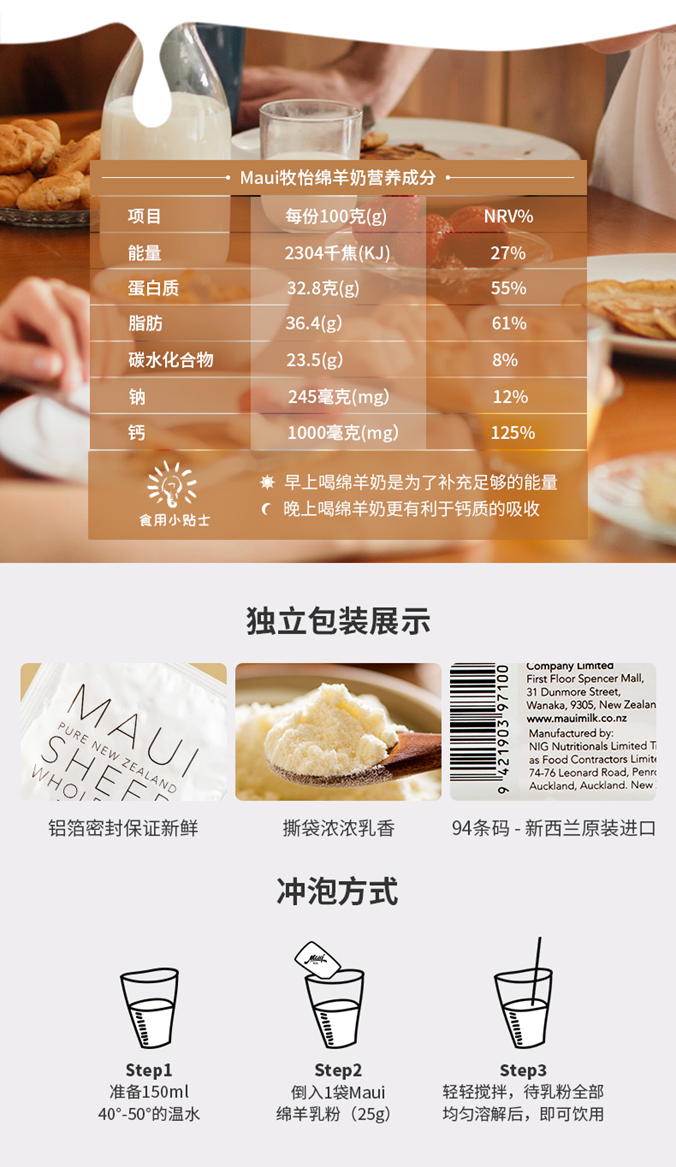 maui牧怡绵羊奶特含免疫球蛋白+不饱和脂肪酸+Egf上皮细胞因子,