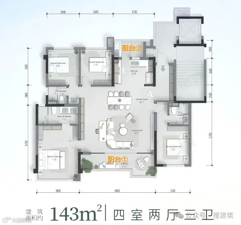 产品力大爆发的当下,各大地产在143㎡产品设计上不断推陈出新,越来越卷的同时,带来的是越来越好的户型,户型整体也呈现出更加「豪宅化」「精细化」的势态。