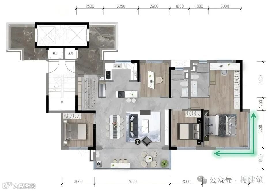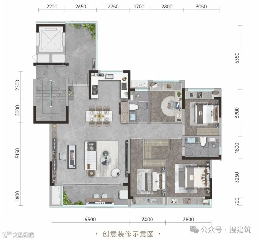 动静分区的空间格局,更加强调客餐厅的享受度,阳台开间也从6m提升到6.5m。