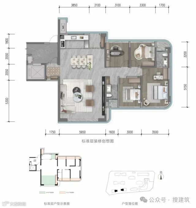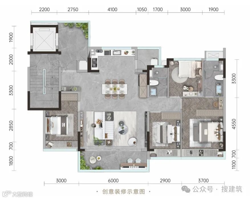 ▲ 能建·锦誉府建面约143㎡B户型样板间实景合成参考图