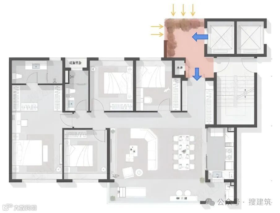 两种户型都有很多充满惊喜感的细节,比如,约预留好水电点位的全明电梯厅、入户玄关的超强收纳空间、阳台地暖通铺……