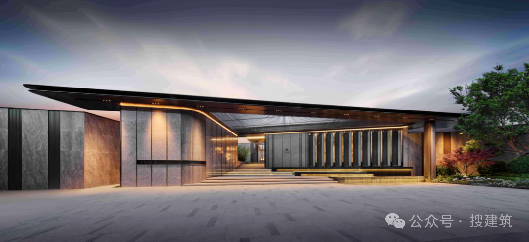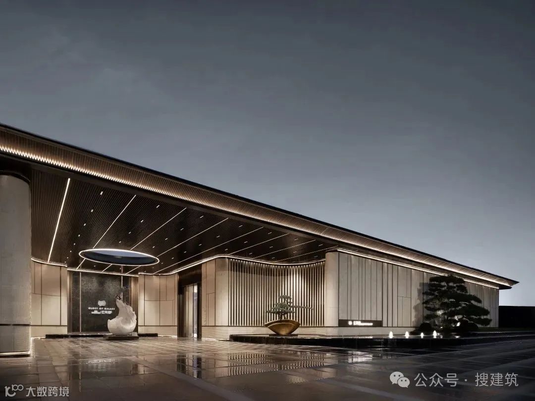 该设计方案特别强调建筑的水平线条和显著性,通过一个长达84米、高8米的府邸式社区大门,营造出一种尊贵而庄重的归家氛围,体现了传统东方归家仪式的感觉。