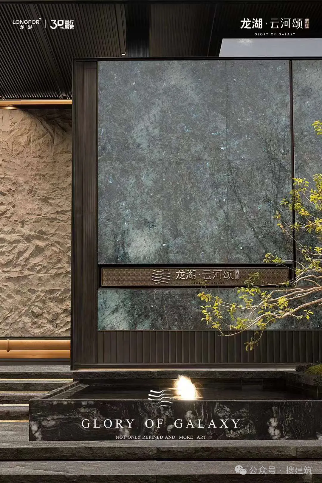 9米 = 3倍住宅层高。项目入口的建筑高度是少有的尝试,但很成功,让人印象深刻,既有气势,又充满惊喜,现代简约而极具力量感,极致品控,呈现出“星空感”的第五立面,为城市环境带来亮眼的风景。