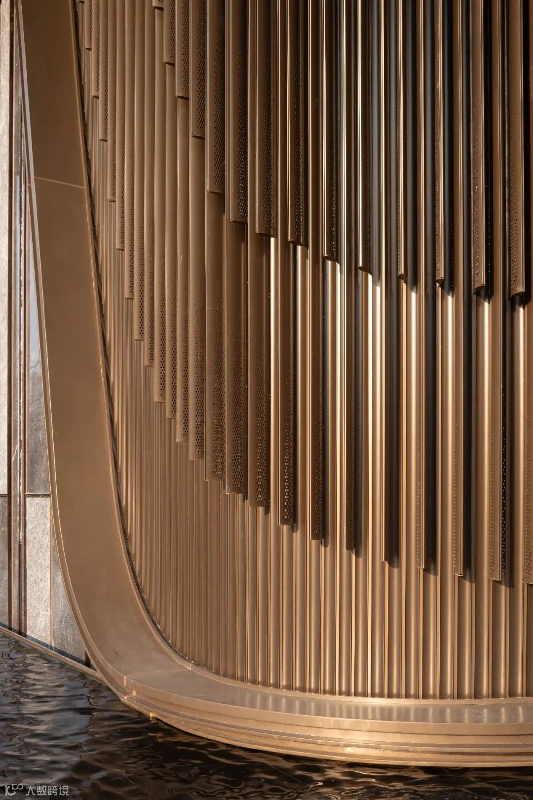 曲面幕墙+金属格栅吊顶的圆弧造型呈现出曲线的灵动。