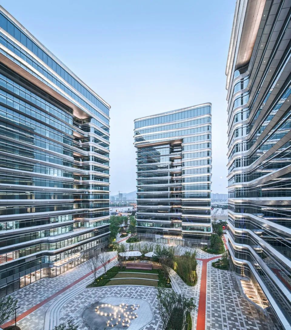 如杭州开源智慧网谷–顺丰创新中心的立面由国际知名设计事务所Gensler参与设计,为建筑创造极具未来科技感和律动变化的现代表皮。