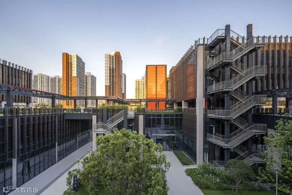 深圳碧桂园凤凰智谷的外立面简洁挺拔,采用玻璃幕墙与竖线条遮阳板,给人以清爽高效的整体印象。