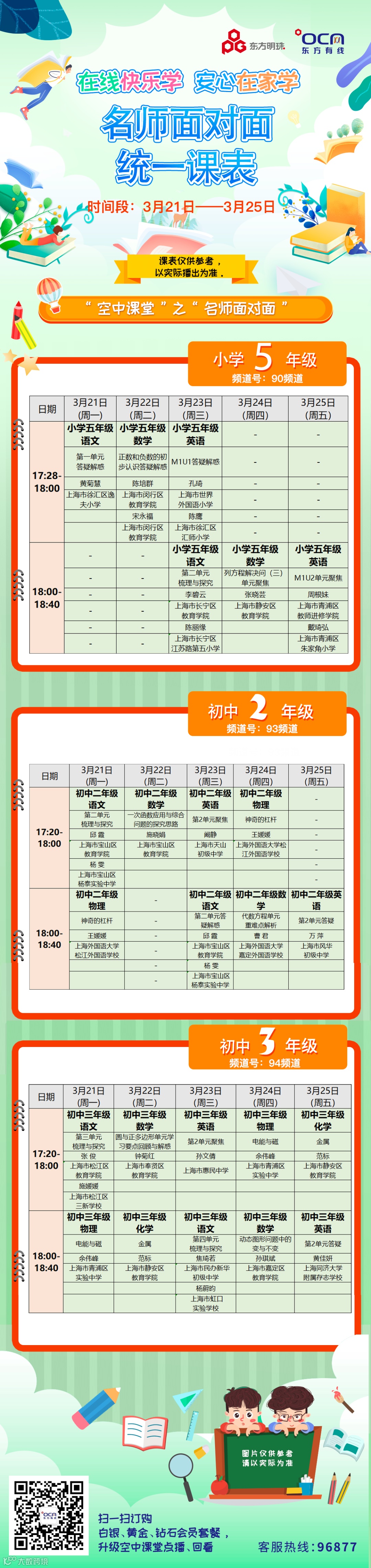 根据市教委官宣3月12日起中小学改为线上教学。“空中课堂”的教学资源很丰富,其中“名师面对面”不仅涵盖了2021学年第一学期推出的初二、初三年级语文、数学、英语、物理、化学等五门学科的视频课资源,还新增2021学年第二学期小学五年级语文、数学和英语。