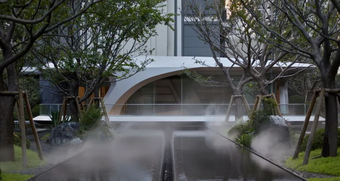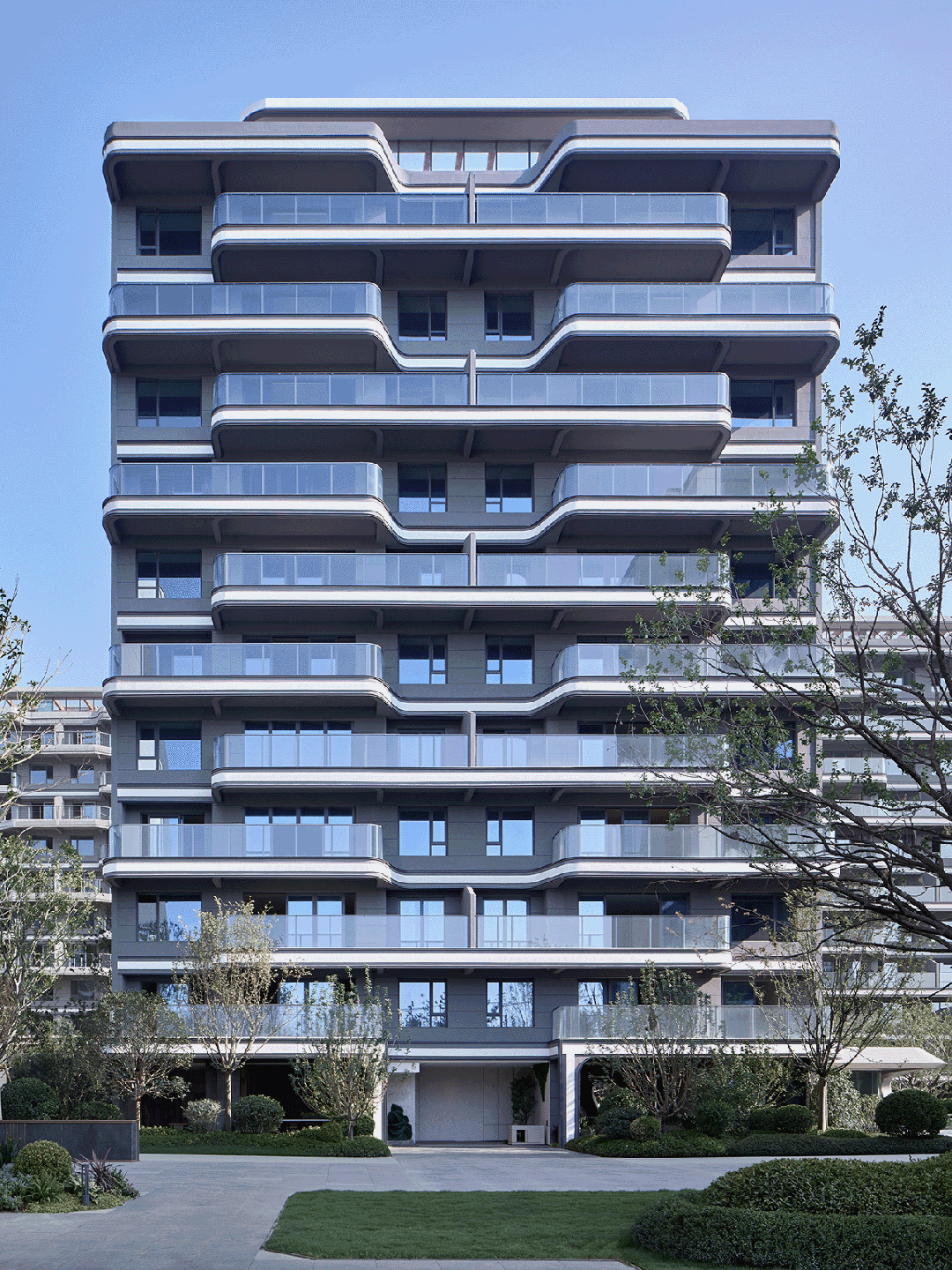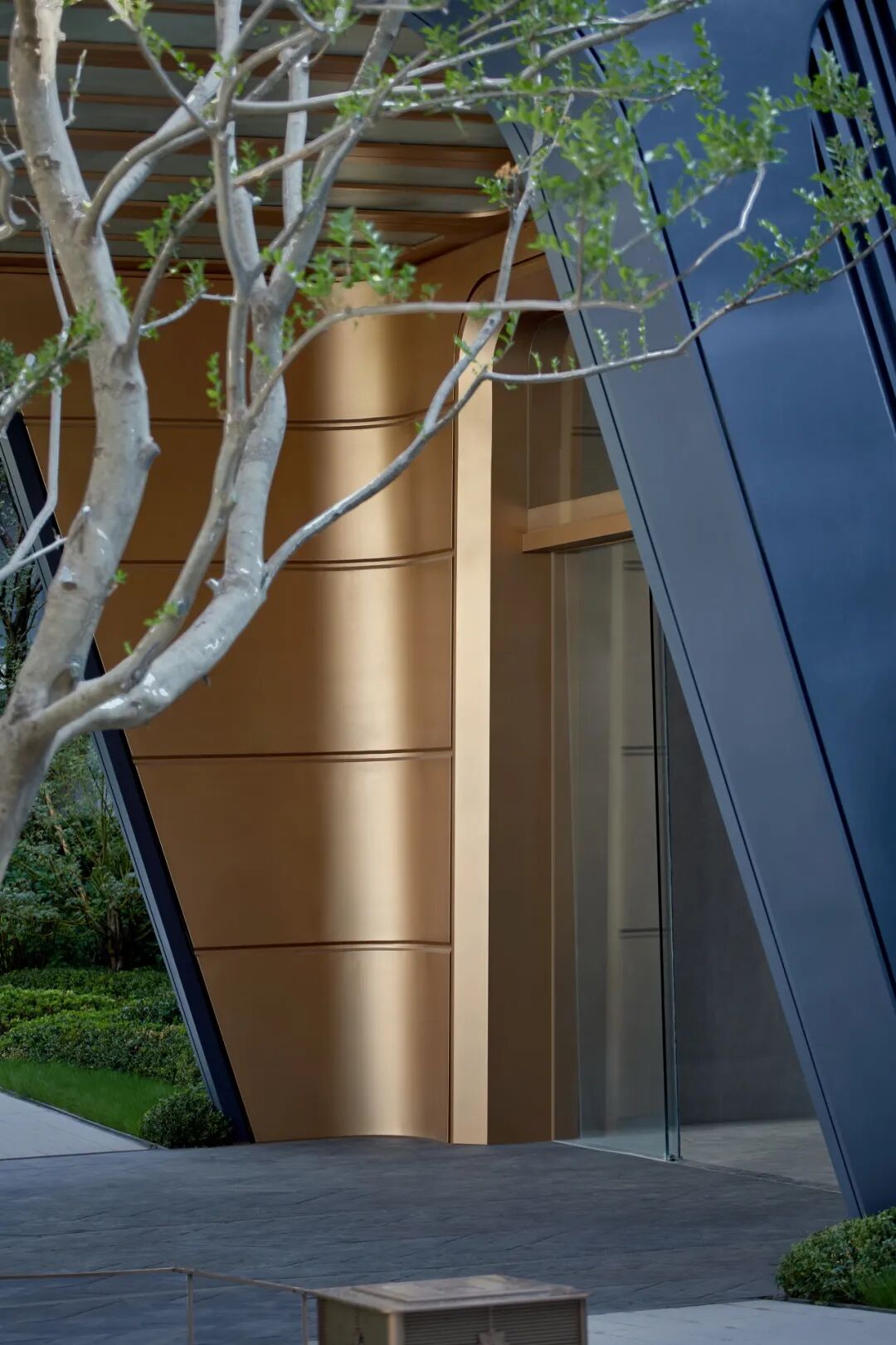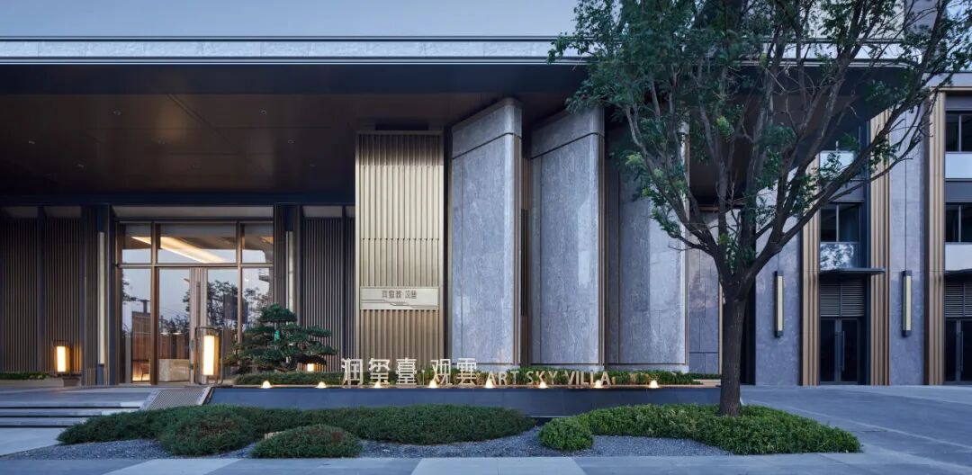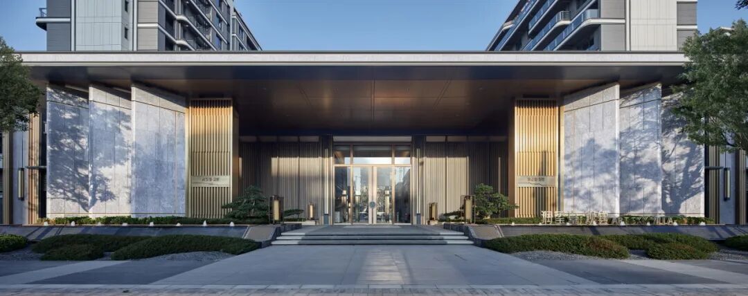 我们力求在每一处细节上展现匠心独运,通过石材的疏密排列与光影的巧妙运用,形成一幅诗意山水画卷,使人在归家的过程中获得松弛感与尊贵体验。配以城市橱窗造型,以建筑景观一体化的尊享界面呈现,共同营造出双重礼遇的归家仪式。