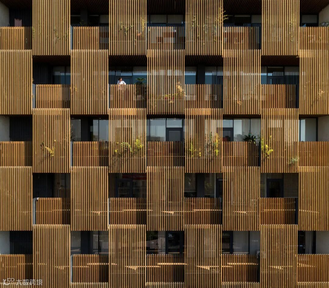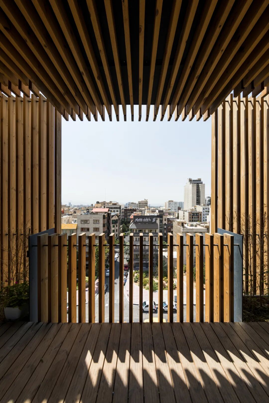 为此,建筑与城市之间的边界由两个不同的层次来界定。第一层更靠近内部,由透明的大窗户组成,让自然光洒满整个空间,提高了可视性和开放性。第二层是半透明的外层,由木制栏杆和钢制花盆组成,形成一个可渗透的屏障。外层起到了过滤的作用,在调节光线和气流的同时,也为居住者提供了私密性。这两层之间的空间成为活动区--部分开放,兼具功能性和美观性,并缓和了建筑与城市环境之间的过渡。