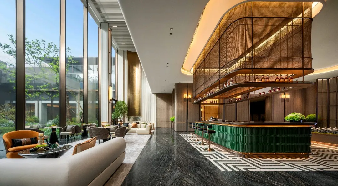 建面约4000㎡的One会馆说是义乌名流场也毫不为过。会馆内配置有开放式酒廊、蓝宝石泳池、国宾私宴厅、下沉式庭院等高定生活空间,这里不仅可供业主休闲放松,更是圈层社交秀场。