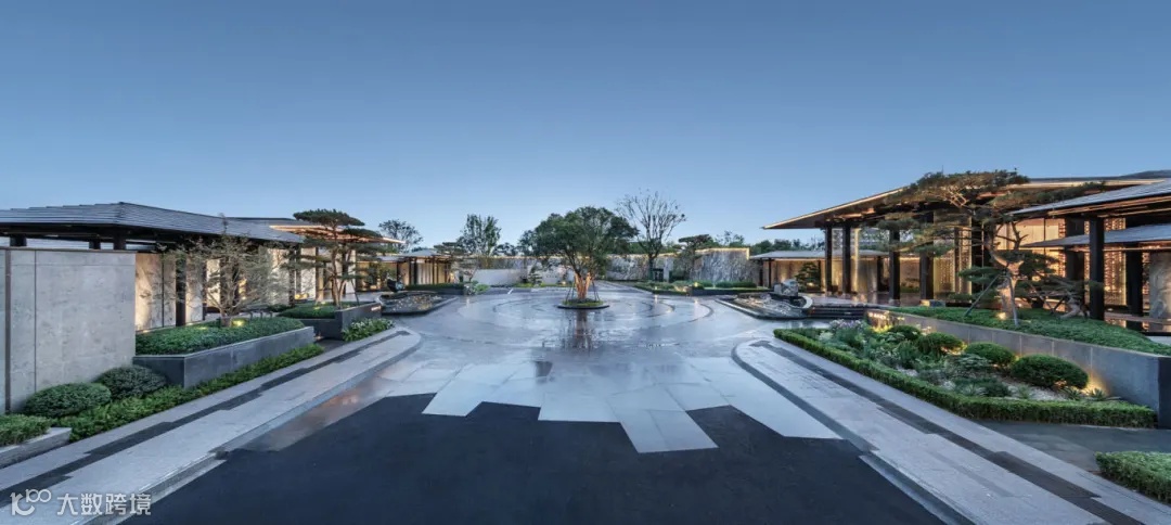 本项目的设计由新中式风格的入口、新中式合院、现代感高层组合,是中式建筑与现代建筑的对话及融合有机体。