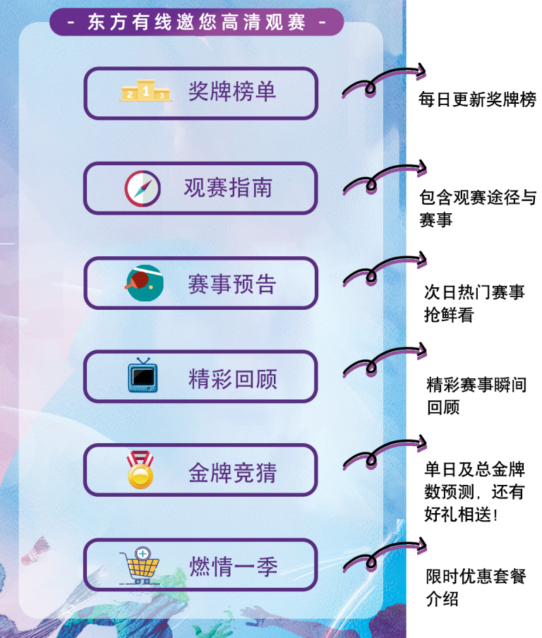 奥运健儿为国争光,上海选手更是上海市的骄傲,东方有线作为上海专业的视听娱乐服务商,为了让用户沉浸式享受奥运盛事,特别推出了 “精彩奥运”专区。