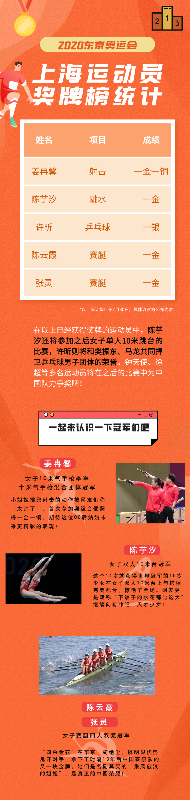 那么本届东京奥运会上海健儿表现如何?是否在前辈的基础上再创佳绩,更上一层楼呢?