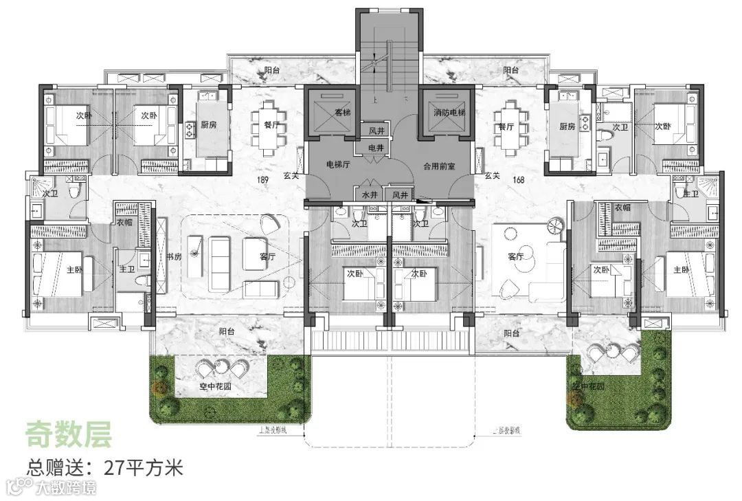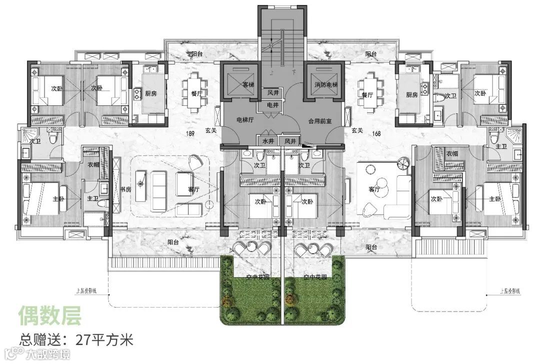 2、赠送空间巨大,露台大部分或全部赠送,不计入建筑面积