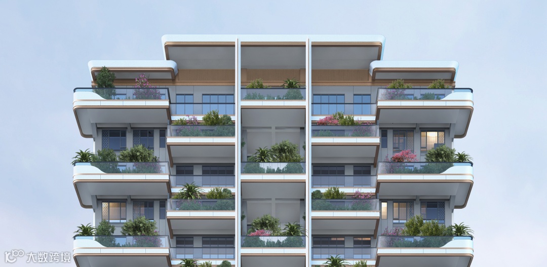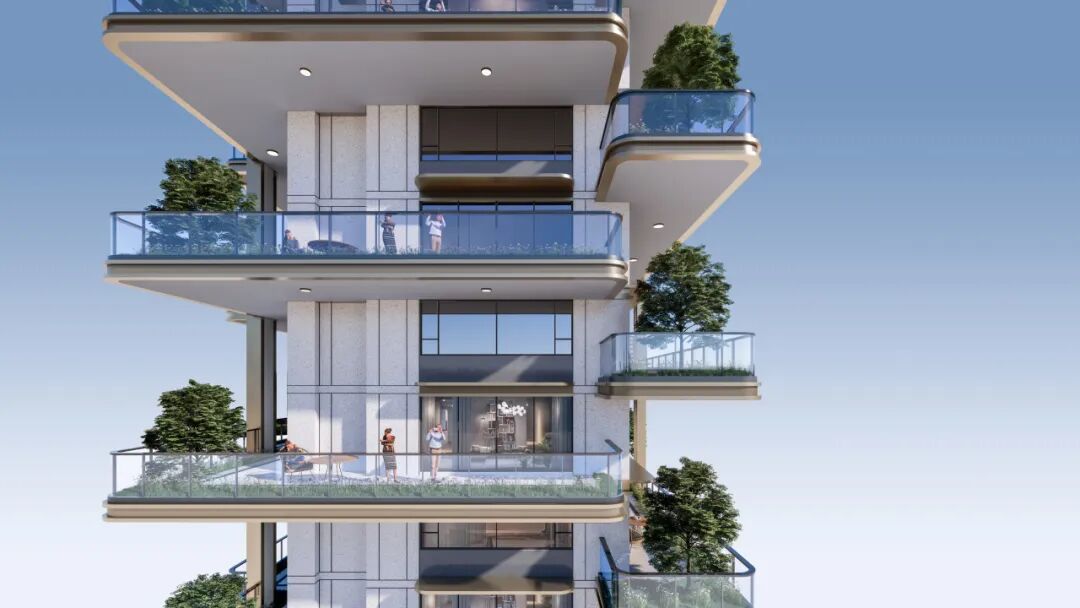 银丰玖玺城 | 珑和院项目,户户享“空中花园”,设计通过构建垂直森林花园体系,打造空中庭院,每一户都带有面积约9-72㎡、挑高约6.2-7米的私享露台,得房面积约提升10-50㎡,房产证使用面积提升15%以上。窗墙比达到0.5,更多阳光、空气进入庭院和户内。