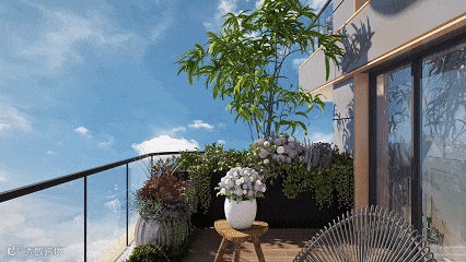 传统阳台和露台是横向的,三木乐府的空中花园既有近22m的南向巨幅花园,也有近8.4m进深、6m通高的空中庭院,纵深融入户型内部。