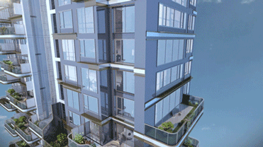 我们来看一下三木乐府项目,通过阳台与空中花园结合形式实现跑道式空中花园的同时,保证一定数量的居室享有较佳日照条件。而且它改变了户型的传统结构,让客厅、卧室与空中花园交融在一起,打破了室内外空间的边界。