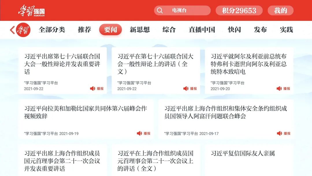 “强国TV”的内容和功能与“学习强国”手机端和电脑端同步,同一账户积分互通。