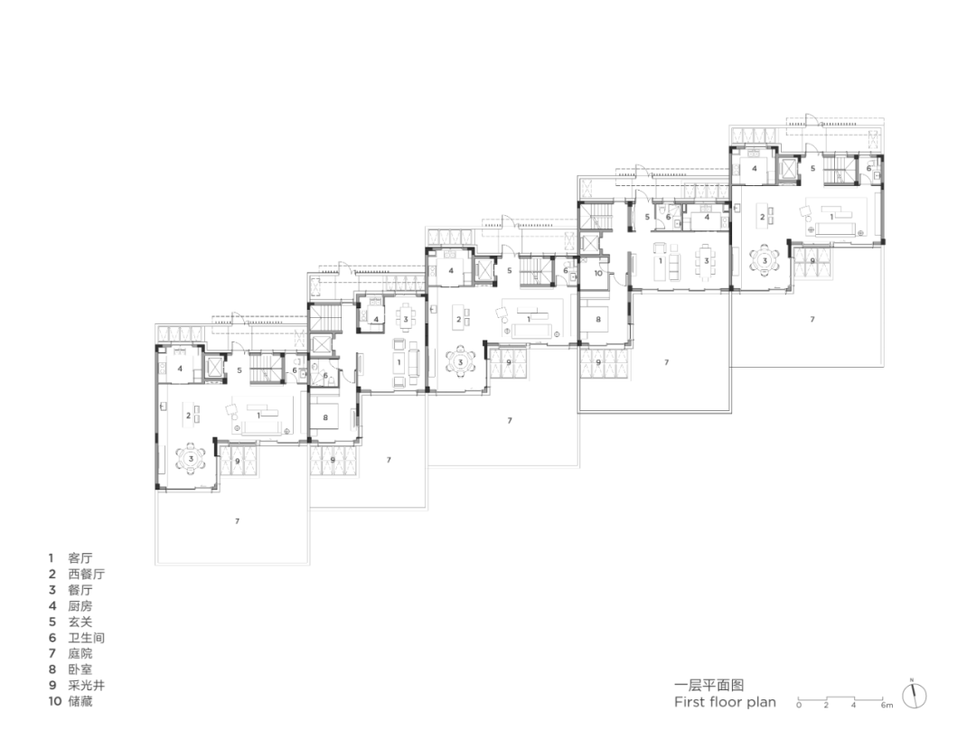 场地南侧排屋以连续的Z字型锯齿状布局回应东侧的营盘山,不仅能够保证每户都拥有极好的观景视野,而且将单向采光变为多向采光,使得居所内充满阳光,并因此取名为“光之宅”。