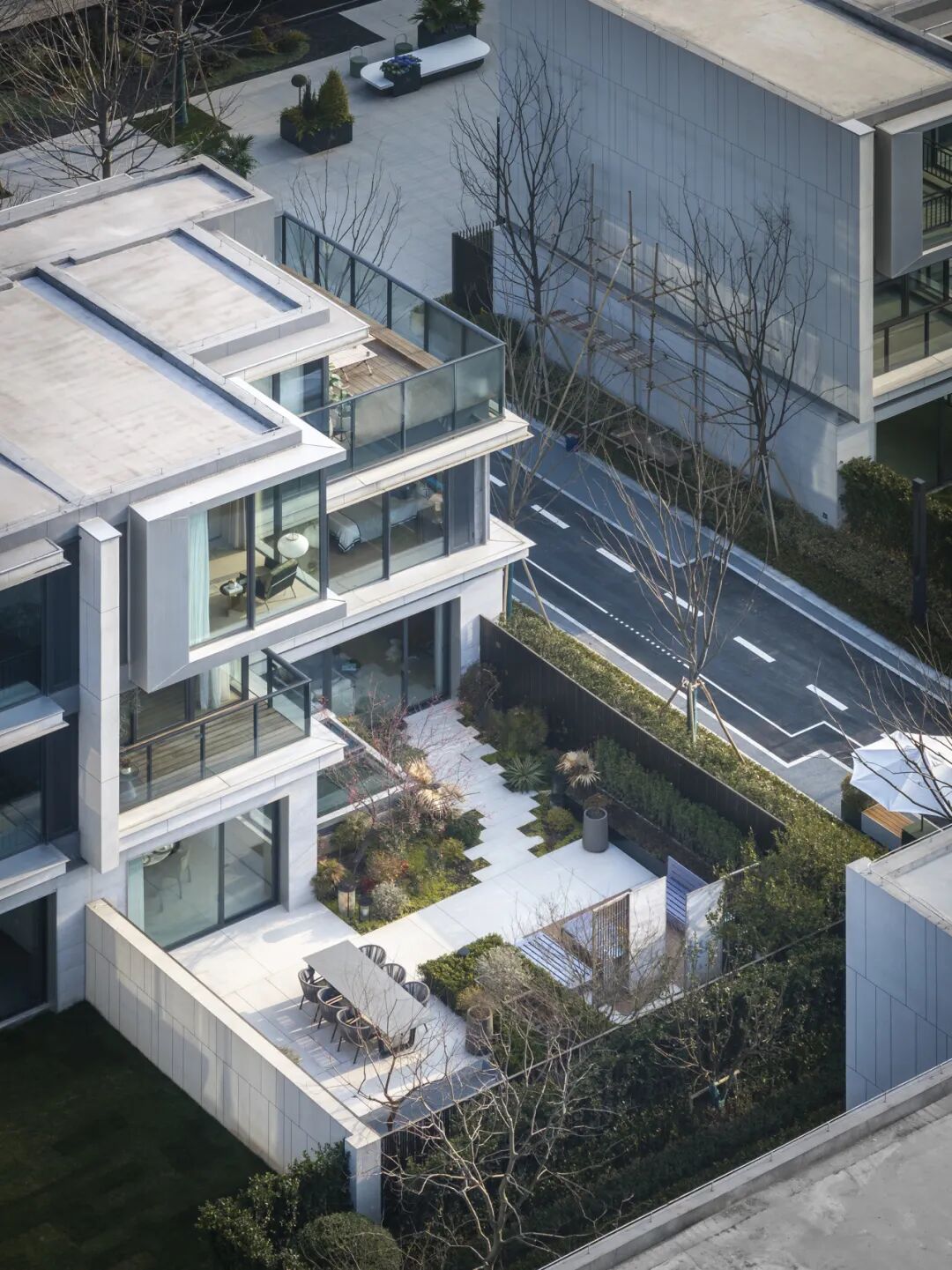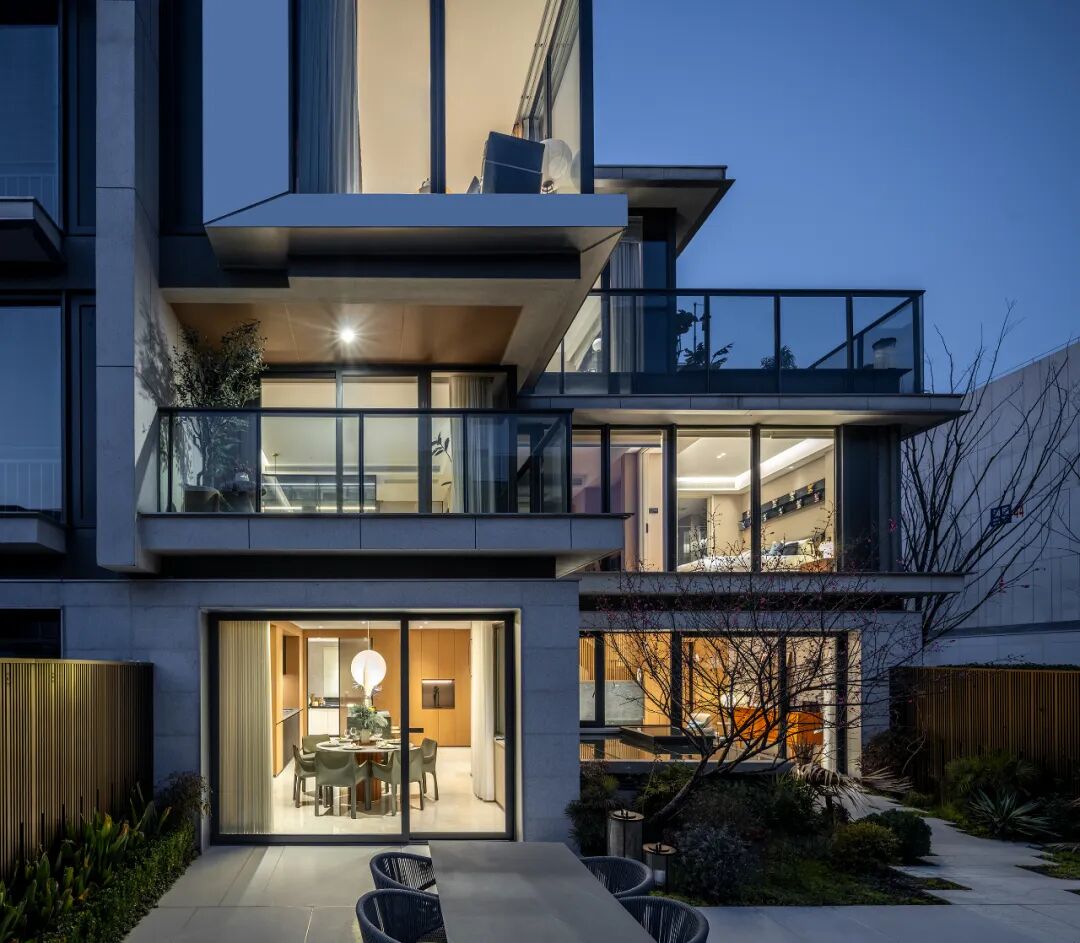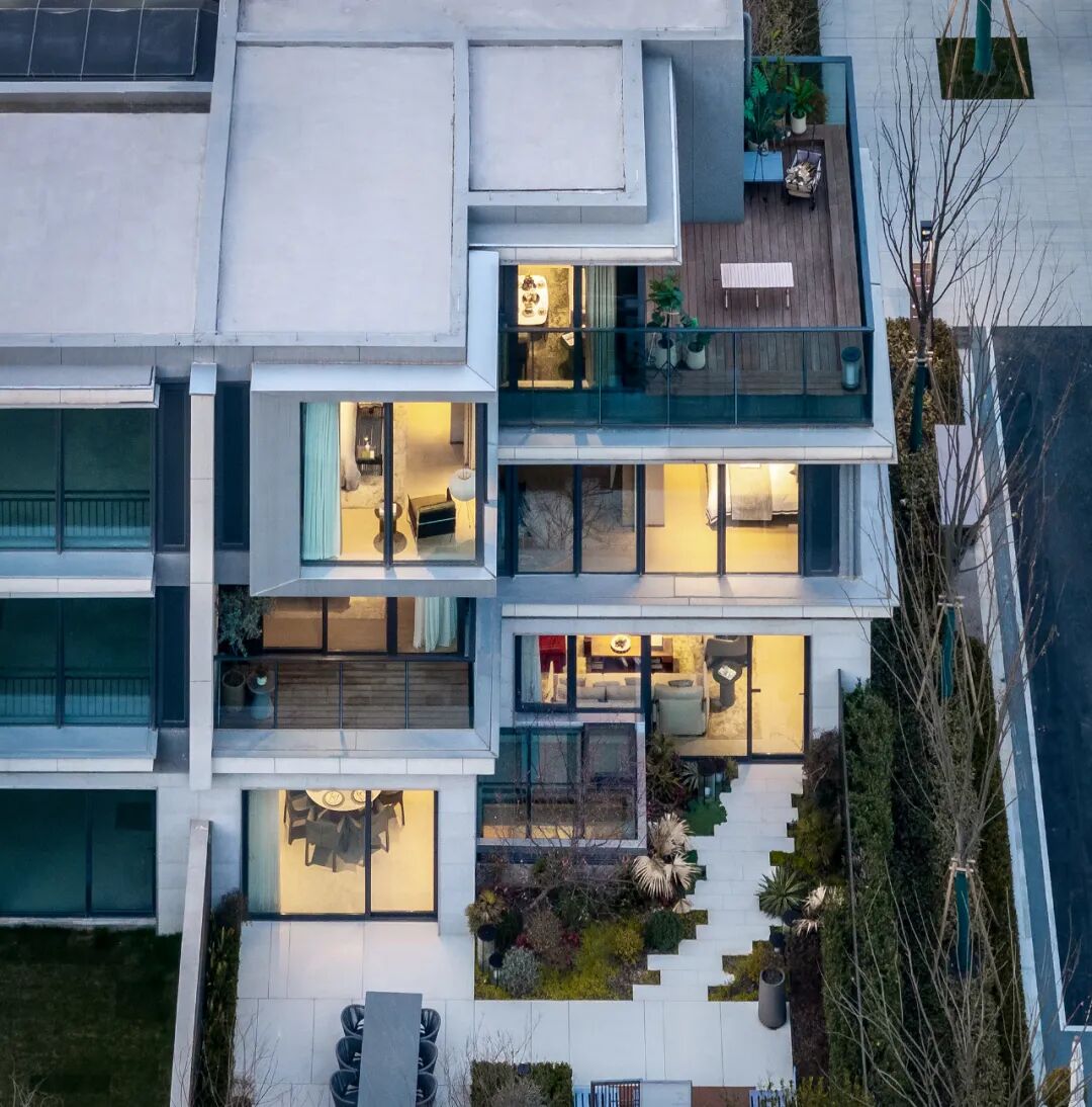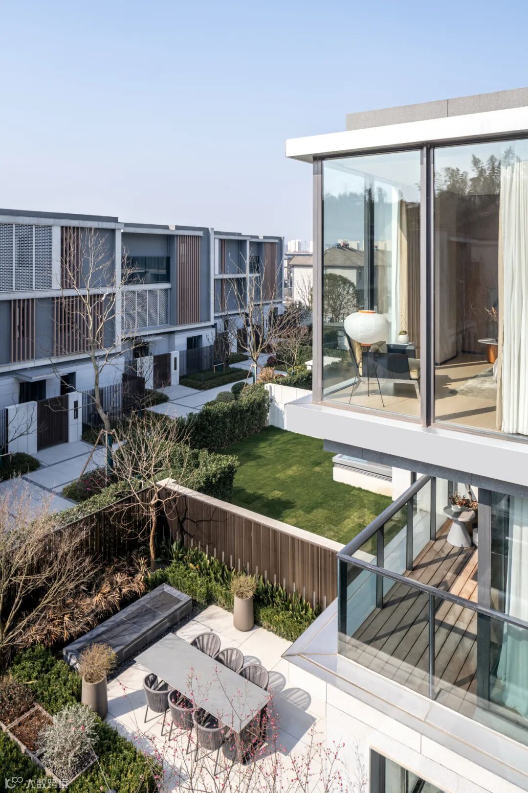 全新的居住空间——高窗墙比、三面宽景、院落以大幅视野、巨幕视角,形成了一种私密性优于联排,景观获取优于合院的居住格局,将度假的松弛感、居住的安定感贯彻始终。