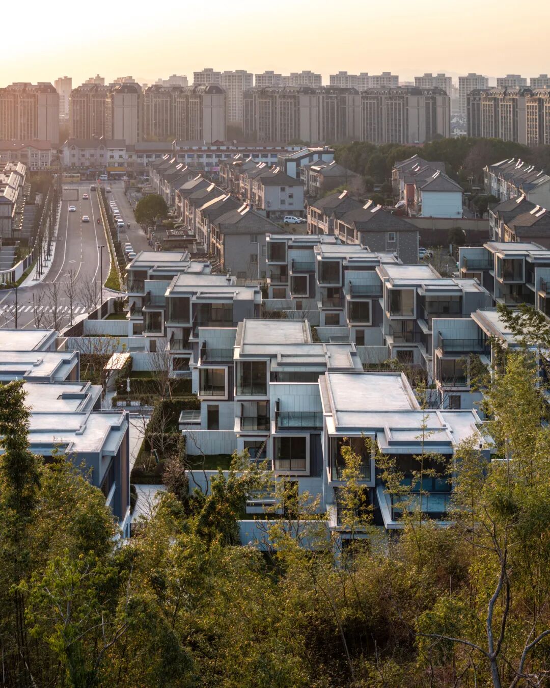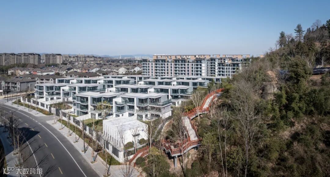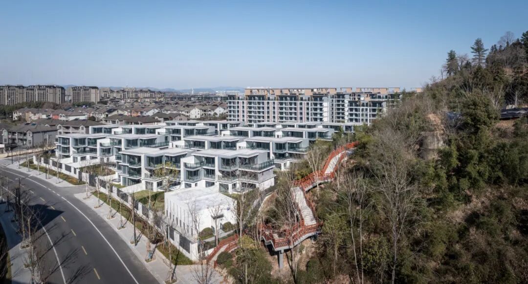 不同于单一地块的住宅设计,设计团队首先将场地东南侧的营盘山纳入一体化设计,以身心疗愈为导向,通过营造亲生命场景与氛围,将依山而居、栖息自然的传统生命经验融入当代都市的生活,演绎“自然建造(Natural Building)”体系之下的超日常度假生活概念。