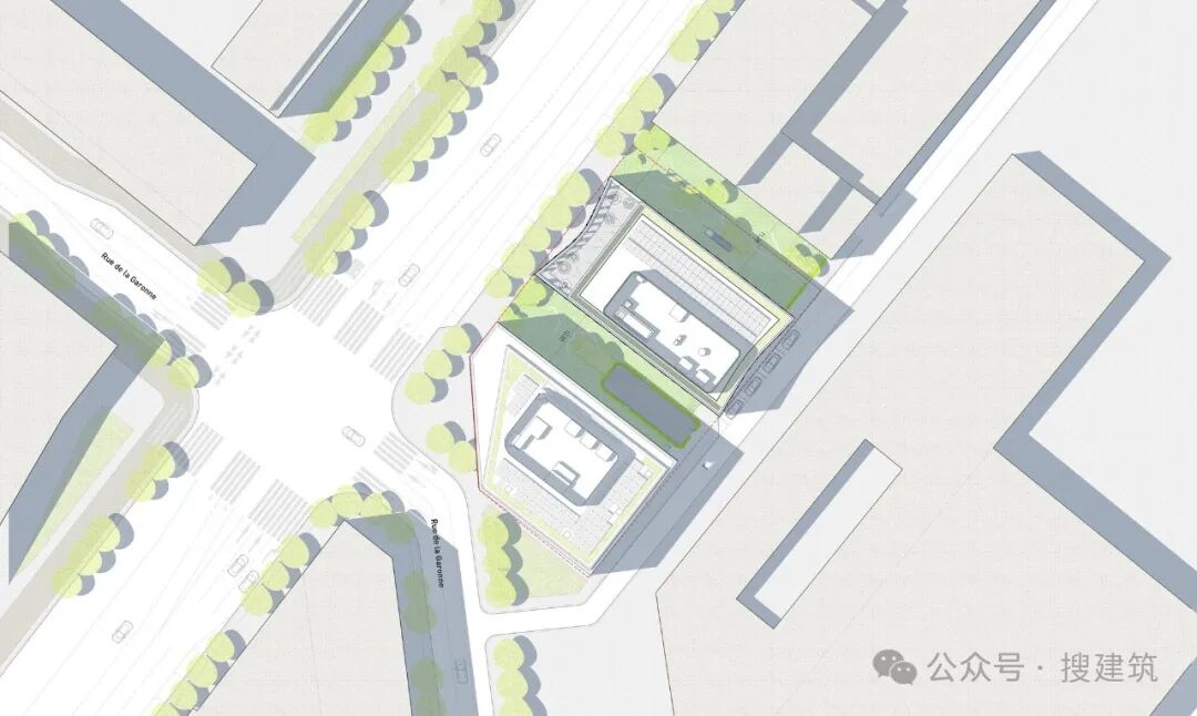 Finally, the project is able to evoke French and Bordeaux's historic architectural elements without any nostalgic spirit – for example, the atrium columns that recall the angular trompes of French architecture in a contemporary approach.