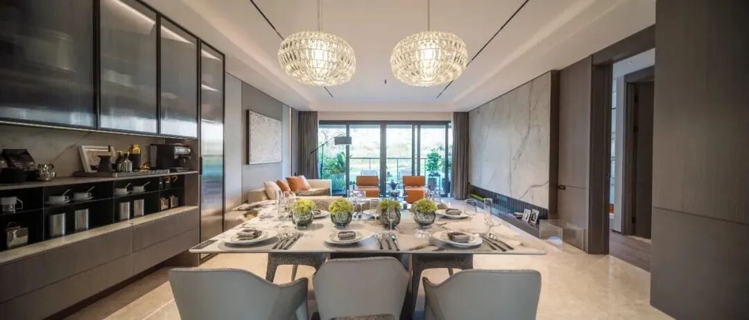 如此公共空间既容得下主人与客人的开阔社交,也放得下家人与个人的细腻温馨,亲密且独立。多触点互动的空间格局,实现家庭的高质量陪伴。