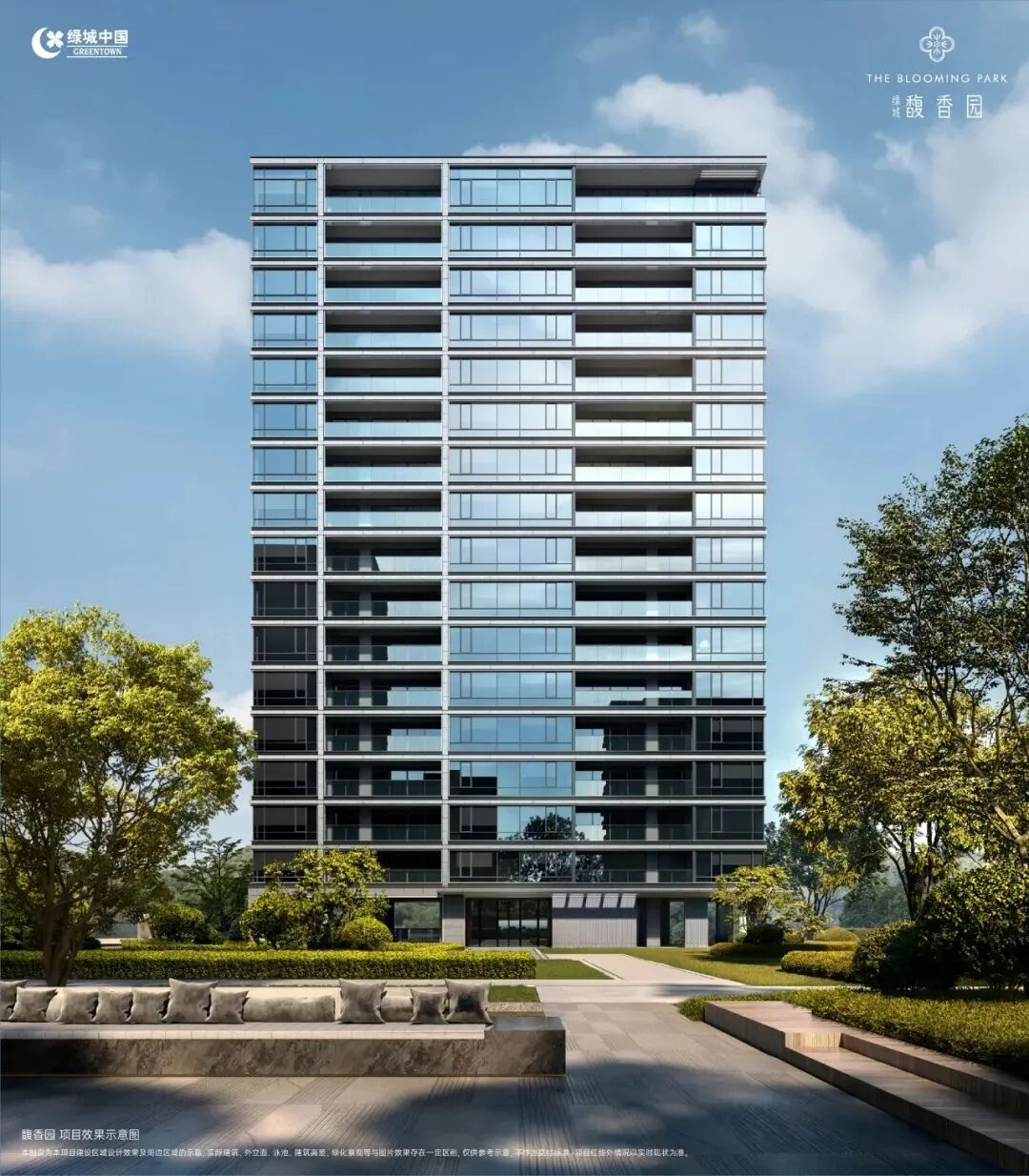 项目外立面沿用绿城经典的铝板+玻璃幕墙,一脉延续绿城经典的现代简约风格立面造型,具有极高的美观度和识别性。