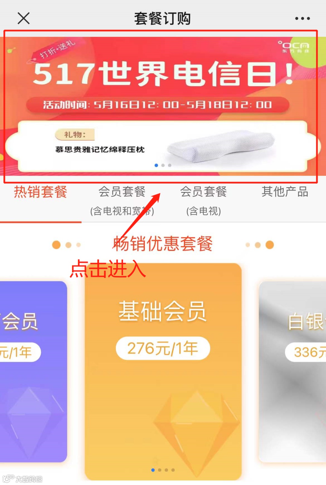 凡是订购517优惠套餐的用户还有机会获得贵雅记忆棉释压枕哦!