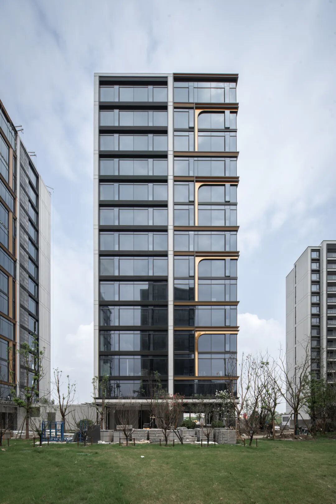 这种弧线型的魅力在于它从勾线、转角、切割、包圈等难度异乎寻常的工艺,因此看起来舒适、时尚、大气和饱满,加上璞云东方大面积流云灰玻和极高的窗墙比,往上看去,就像天空在微笑,让人一见倾心。