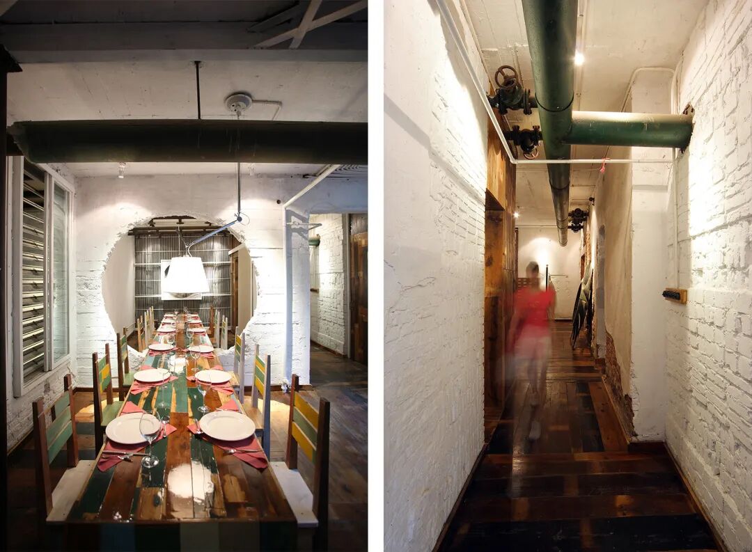 2008年的蜜桃,老木板与旧桌椅,保留风机与管道 ©Metoo