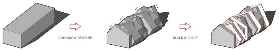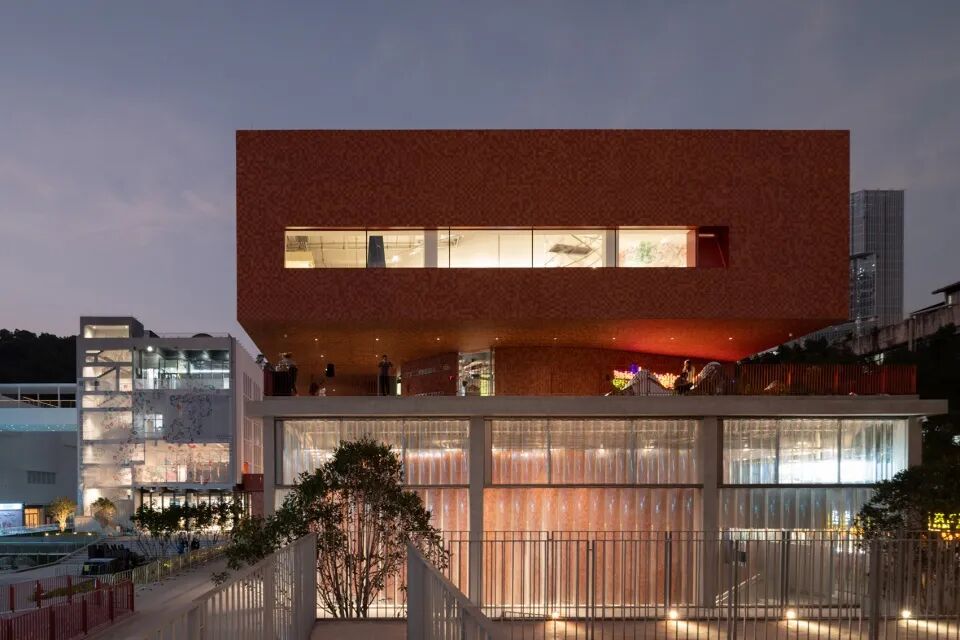 设计师采用整合、插接、介入的改造策略,将场地与西侧路面1.65米,东侧约3米的高差形成的底座转化为空间叙事的基座,统合原本散落的体量,以整体的力量与周围大尺度的新城市环境取得平衡。