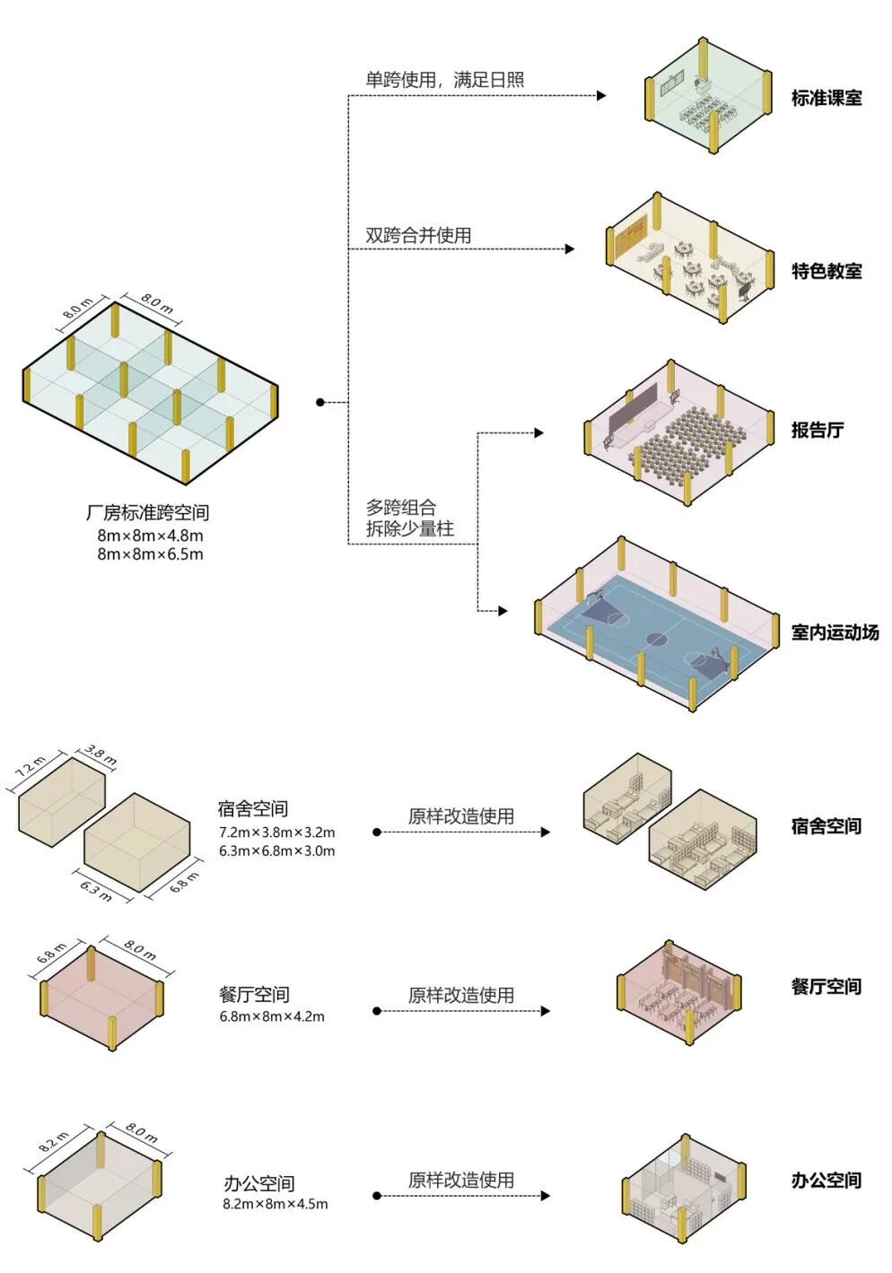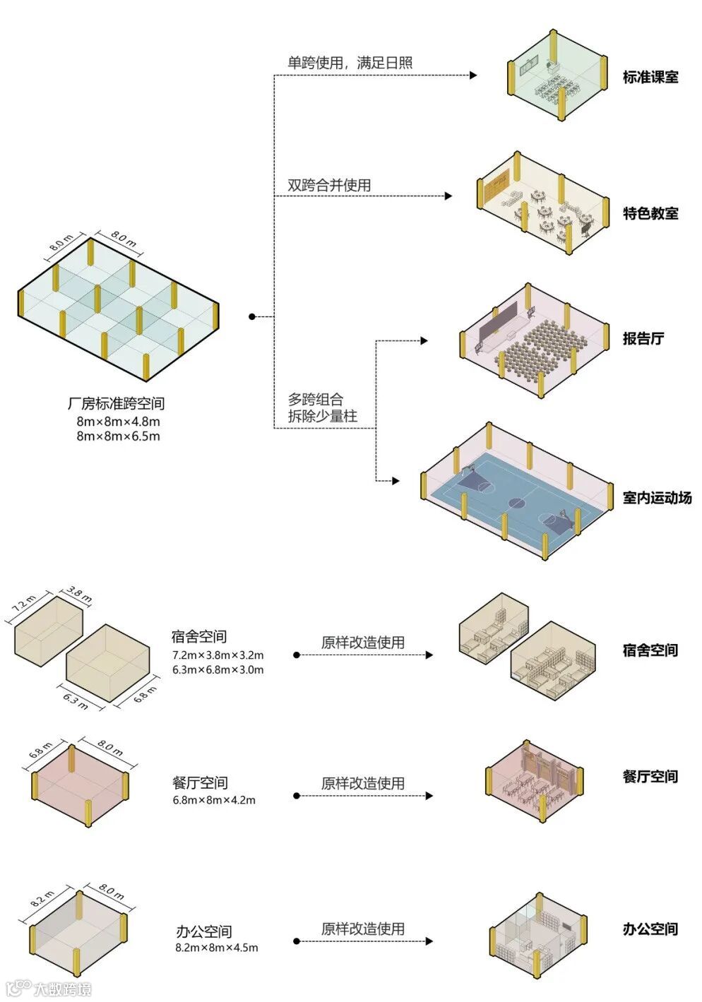 基于原有建筑结构制定的功能改造策略 ©坊城设计