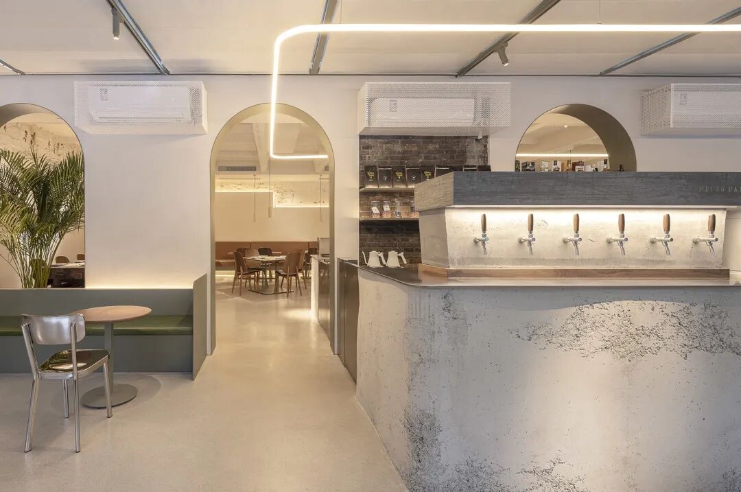 水磨石地面、不锈钢吧台,还有一排精酿龙头从混凝土中钻出,备有6款不同的豆子,客人可以先一一品尝,找到真正喜欢的风味后再下单。