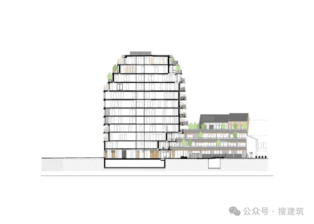 该项目由 122 个住房单元组成,包括老年公寓、托儿所、各种便利设施和办公室,地面面积 2,600 平方米,总面积 8,900 平方米。它平衡了密度与丰富的绿化和各层开放空间,为城市无序扩张提供了一个可持续发展的和谐替代方案。