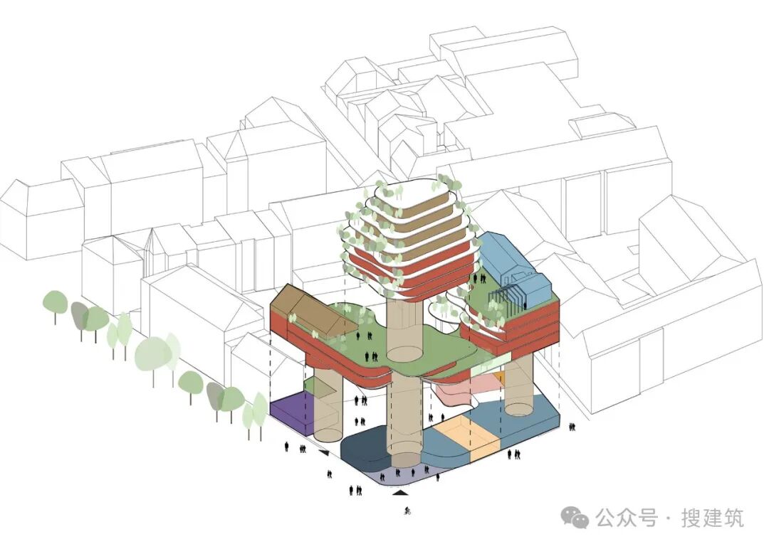 同样,代际战略也是该项目总体规划的指导思想。学龄前儿童、工作的成年人和老年人等不同阶层的人汇聚在一个共享的中央花园。白天,所有人都可以进入花园,花园变成了代际群体之间充满活力的交流中心,以加强社会联系,培养共鸣。