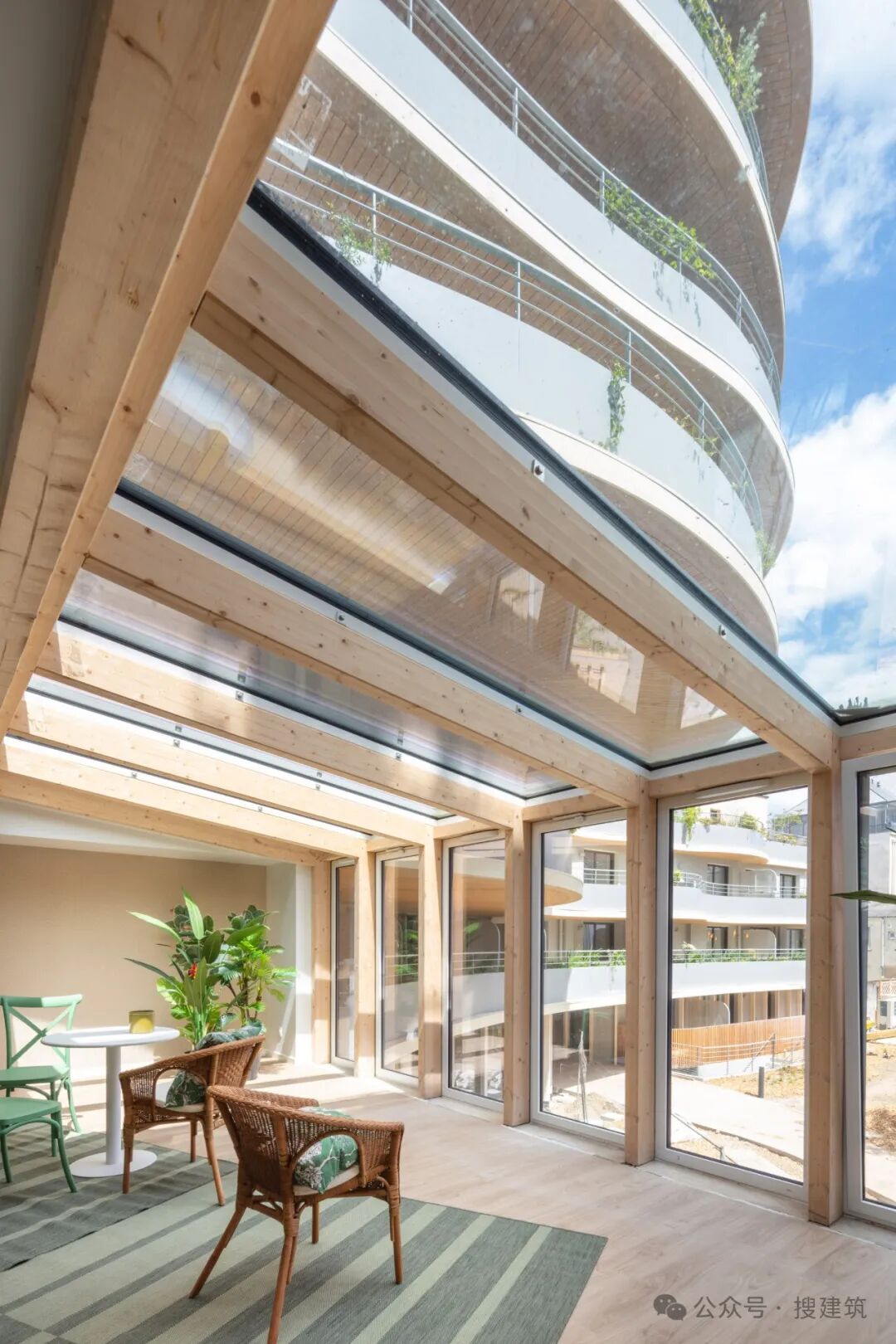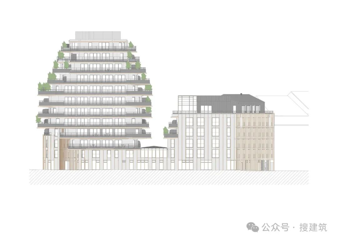 Arborescence 将木材与自然融为一体,为城市混凝土生活提供了另一种选择,通过共享公共区域鼓励社交互动。生物集约化 - Arborescence 和谐地融入场地,充分利用盛行风和日照。朝南的立面从东向西延伸,最大限度地增加了冬季的太阳辐射,而阳台则在夏季充当遮阳伞,保护室外区域。露天种植的植物增强了凉岛效应,促进了生物气候的形成。多向住宅单元受益于自然交叉通风,而起伏的露台则提供了无遮挡的天空景观,确保了居民的舒适和健康。垂直花园的技术性,对密集度的回应--凭借绿色屋顶和种植梯田,Arborescence 倡导生物多样性,并融入城市生态走廊--这是一项惠及所有人的资产。