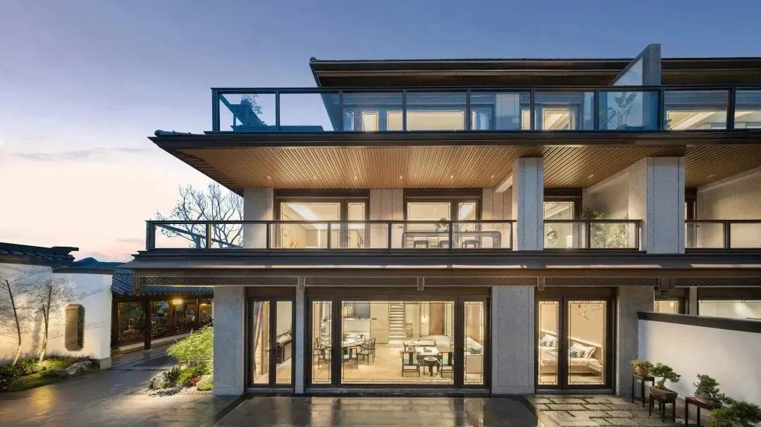 关于叠墅产品的平权思考:项目从东方大屋檐汲取灵感,设计了披檐,有效阻隔了上下邻居之间的视线,解决了视觉性的干扰,同时保障了上中下叠用户的隐私性。
