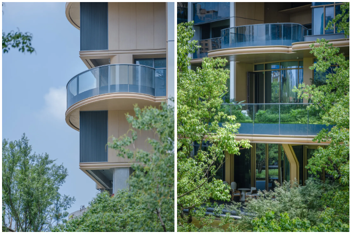 相较于目前已经问世的空中花园项目使用底部斜梁支撑整个阳台,澐璟采用了悬挑梁的形式进行结构优化,解决了大阳台的承重问题,使得建筑整体立面更为美观,保证了空中花园阳台的生活交互性,从而实现无界的绿色森系人居体验。