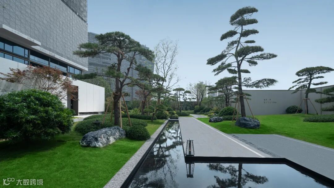 项目园区里的这些松树,复刻的是北京松美术馆的神韵。这里每一棵松树的造型、朝向,都是精心排布的。