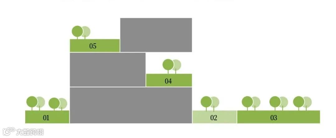 汲取消费降级大环境下,依然坚守品质的新中产需求大尺度庭院、大尺度露台、大尺度景观阳台。